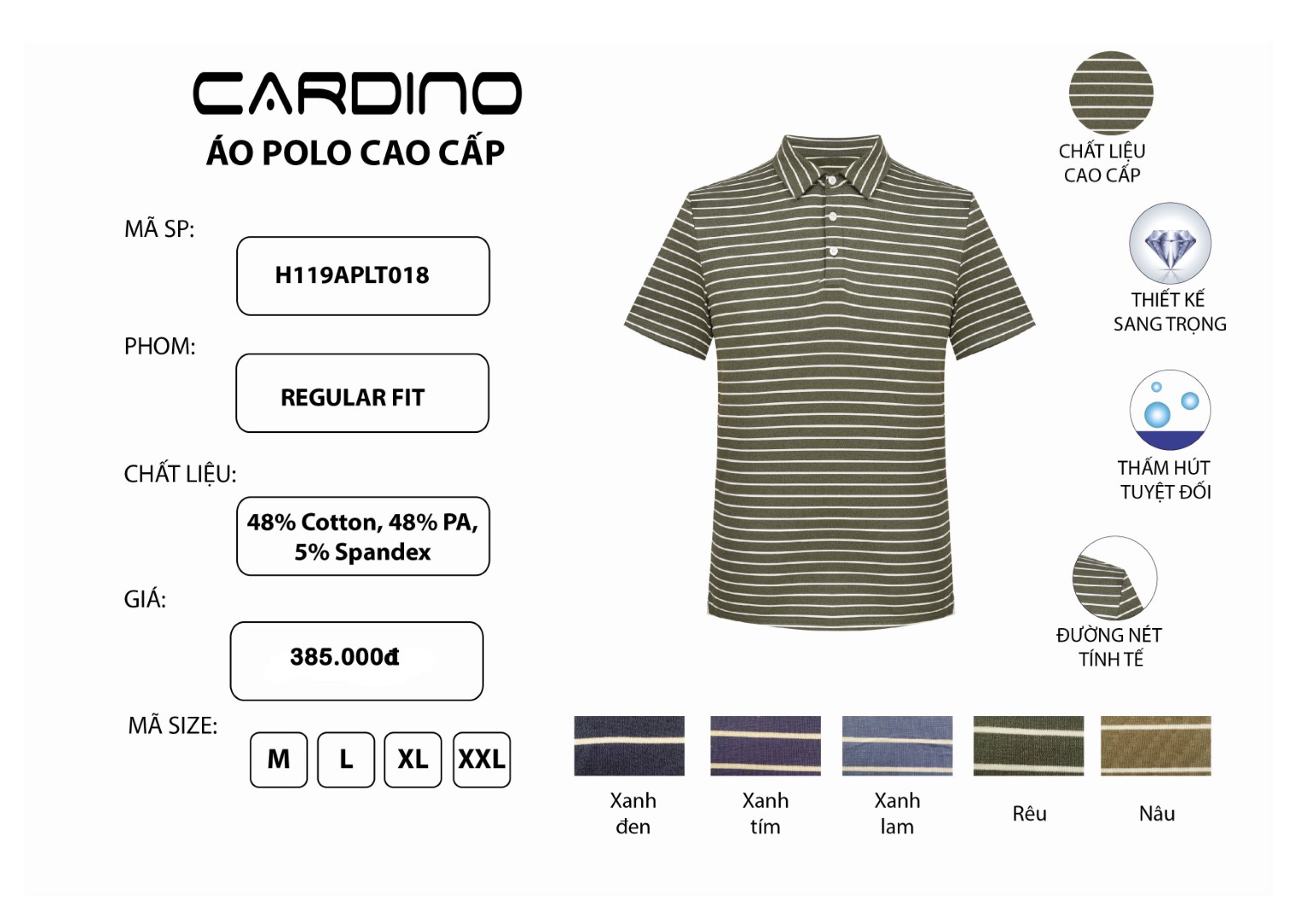 Áo Polo Tshirt Nam Cardino Việt Nam H119APLT018