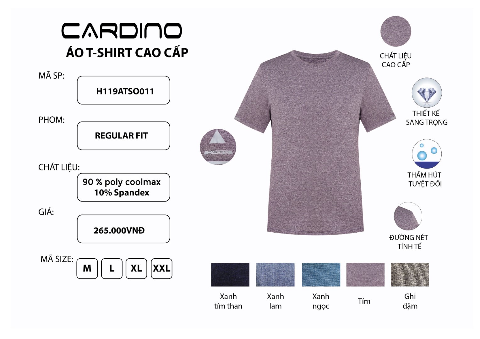 Áo Tshirt cổ tròn Cardino Việt Nam H119ATSO011 mặc mềm, mát nhẹ. Rất thích hợp mặc để chơi thể thao bởi tính thấm hút mồ hôi rất cao do sử dụng chất liệu vải.