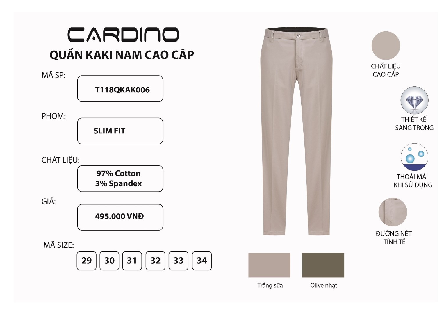 Quần có 2 màu Trắng sữa, Olive nhạt
