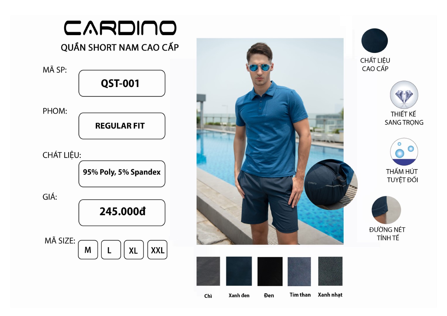 Chất liệu quần short gió nam cardino Việt Nam QST001 95%poly, 5% spandex