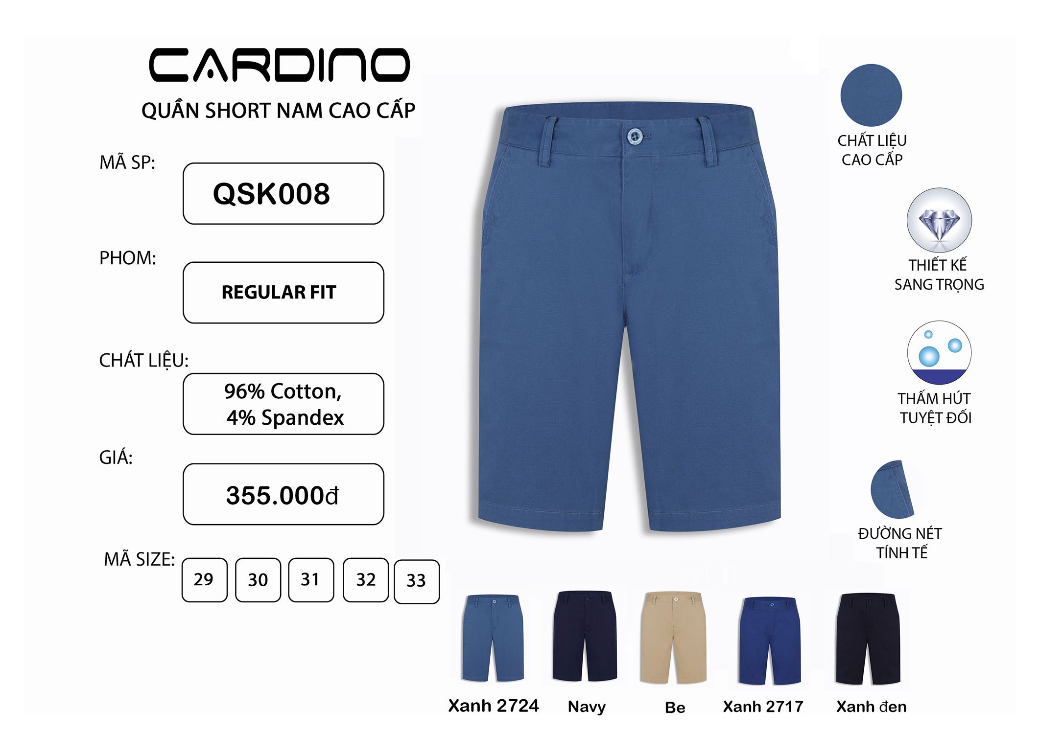 Quần short Kaki Cardino Việt Nam màu sắc trung tính trang nhã dễ mặc: Xanh 2724, navy, Be, Xanh 2717, Xanh đen